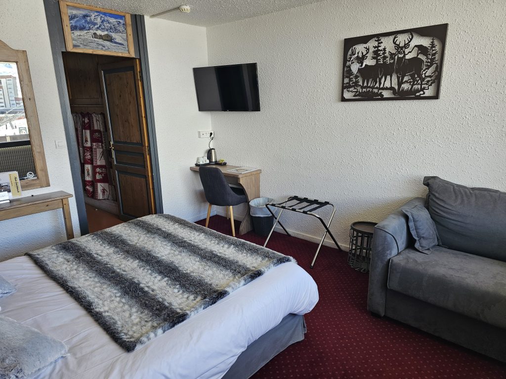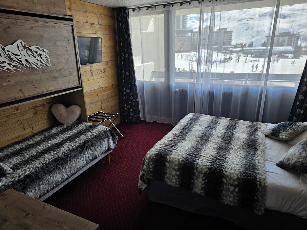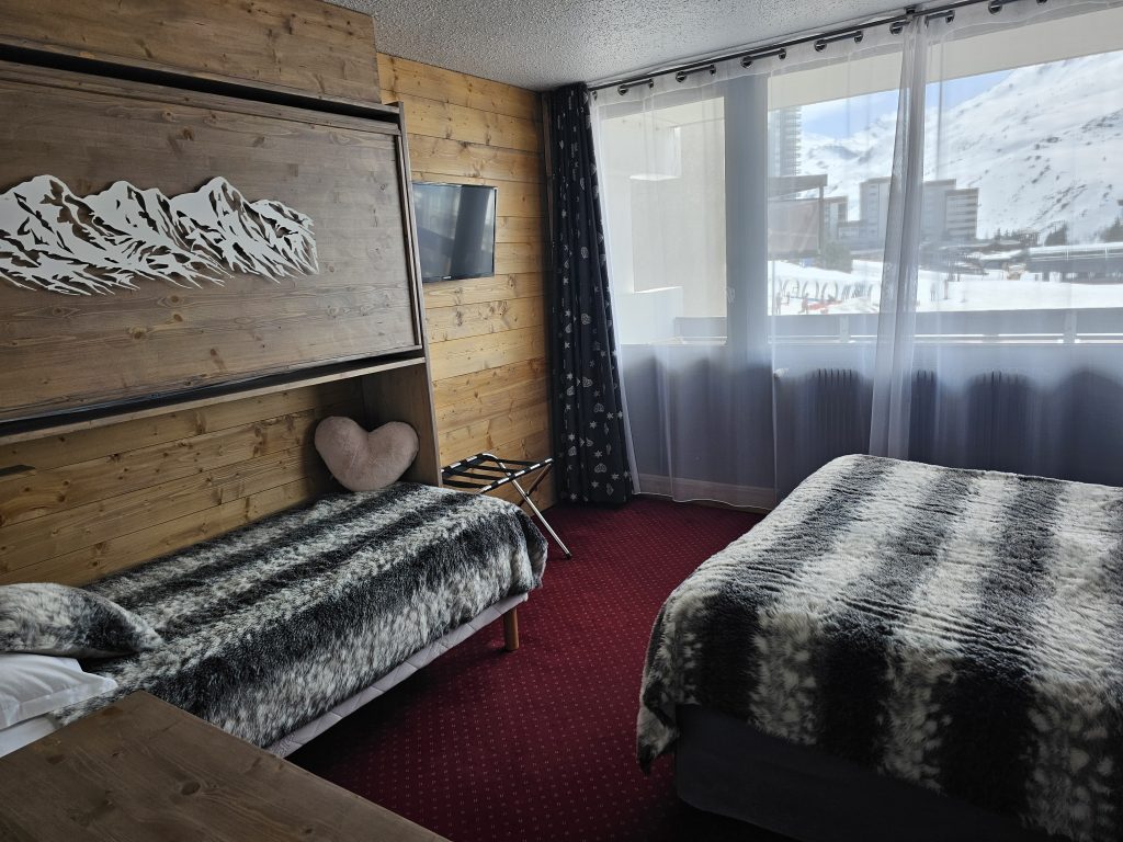 Ces chambres triples confortables vous permettront de vous reposer seul, à deux, ou à trois, dans une chambre spacieuse et cocoon. Elles sont disponibles en lit double ou avec 2 lits jumeaux, avec un lit complémentaire. Ces chambres disposent d’un balcon ensoleillé orienté au sud, avec vue sur la croisette et à deux pas des remontées mécaniques principales, le centre de vie des Menuires.