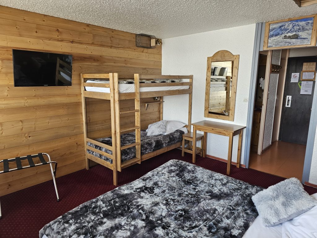 Ces chambres quadruples confortables vous permettront de vous reposer seul, à deux, à trois, ou à quatre, dans une chambre spacieuse et cocoon. Elles sont disponibles en lit double ou avec deux lits jumeaux, et avec deux lits superposés. Ces chambres disposent d’un balcon ensoleillé orienté au sud, avec vue sur la croisette et à deux pas des remontées mécaniques principales, le centre de vie des Menuires.